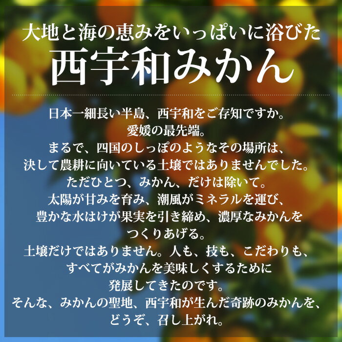 そんな、みかんの聖地、西宇和が生んだ奇跡のみかんを、どうぞ、召し上がれ。