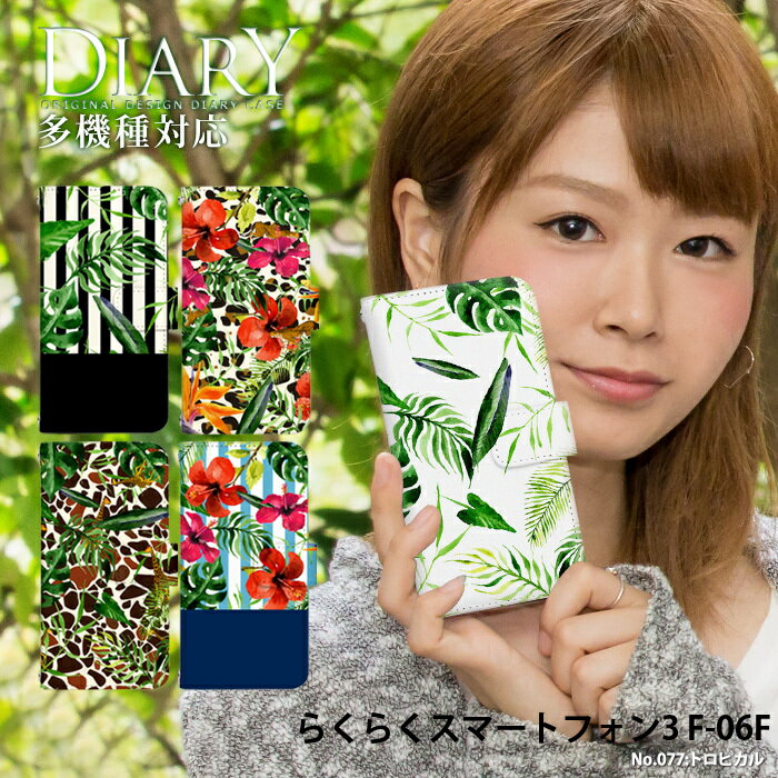 らくらくスマートフォン3 F-06F ケース 手帳型 docomo ドコモ 携帯ケース カバー デザイン トロピカル ボタニカル 夏