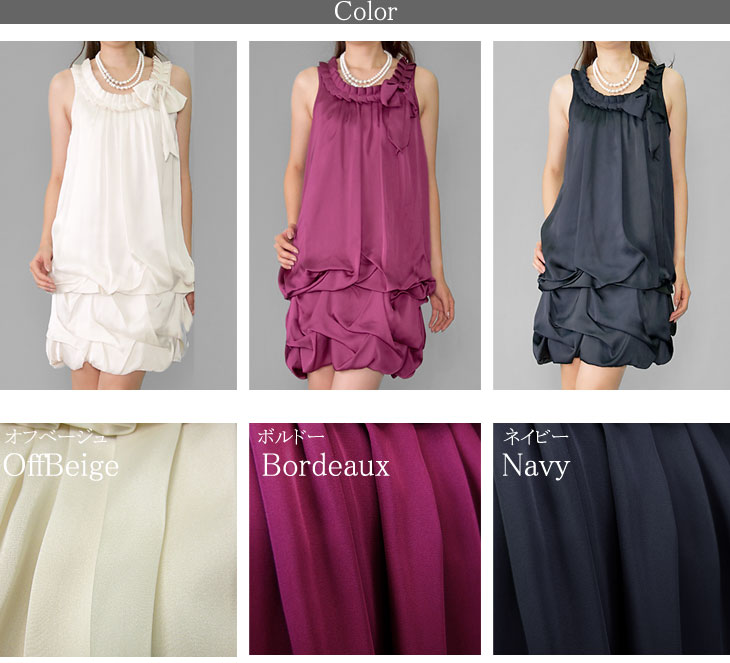 【サイズ】5号/7号/9号/11号/13号/15号/ 【カラー】オフベージュ/ボルドー/ネイビー/ブラック 【ワンピース分類】フォーマルワンピース ▼ふんわりとしたバルーンシルエットには、体型カバーの効果があります。