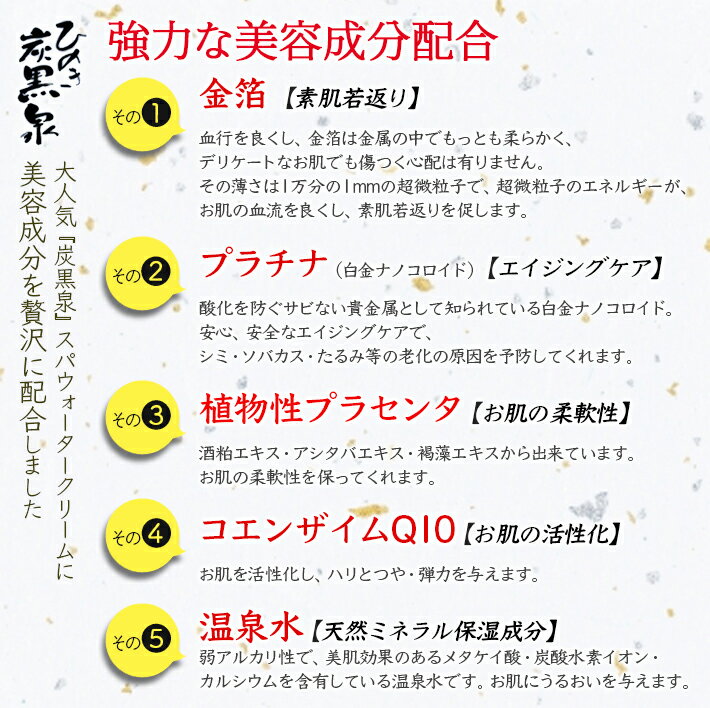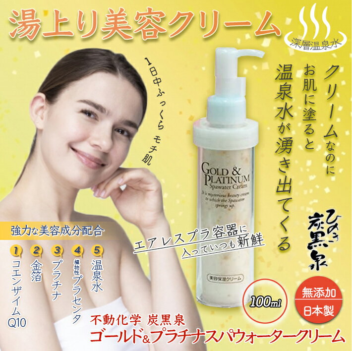 金箔入り ゴールド & プラチナ スパウォータークリーム 温泉水 不動化学 炭黒泉 オールインワン 化粧品 100ml