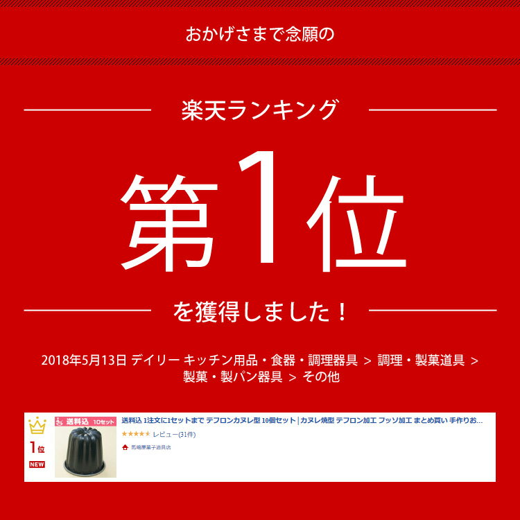 主な仕様 {関連リンク} テフロンカヌレ型10個セットはこちら テフロンカヌレ型単品はこちら カヌレ型一覧 {商品説明} 馬嶋屋で一番人気、おすすめのカヌレ型です。